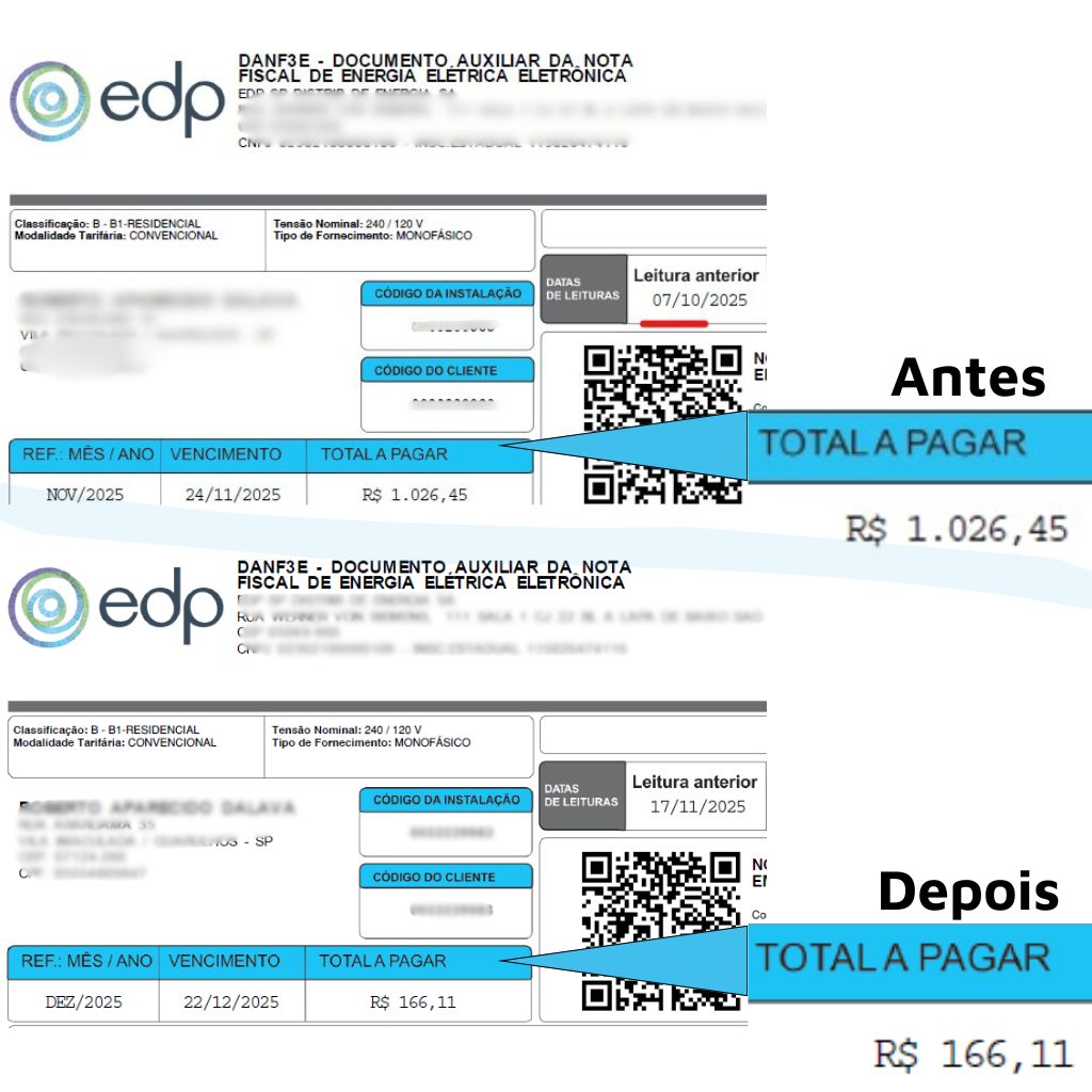 Abaixo temos exemplos de contas reais – os dados pessoais dos clientes foram preservados.